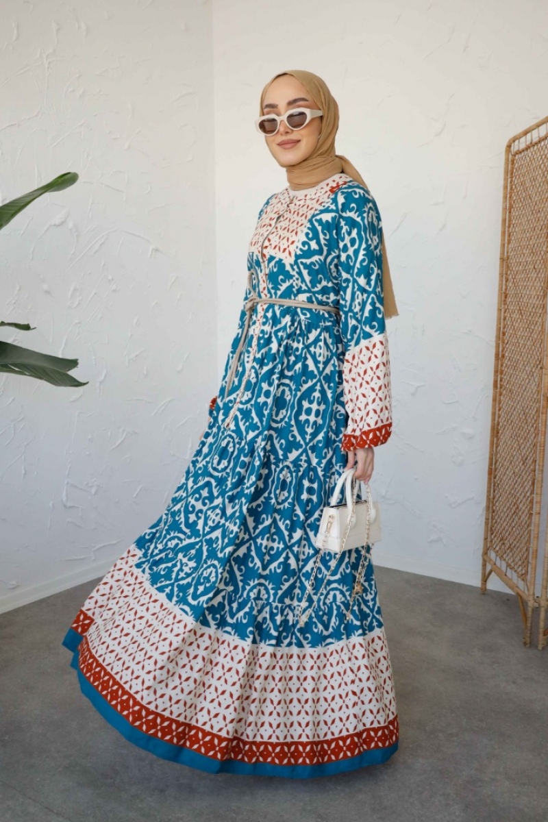 Bihter Mavi Uzun Viskon Elbise