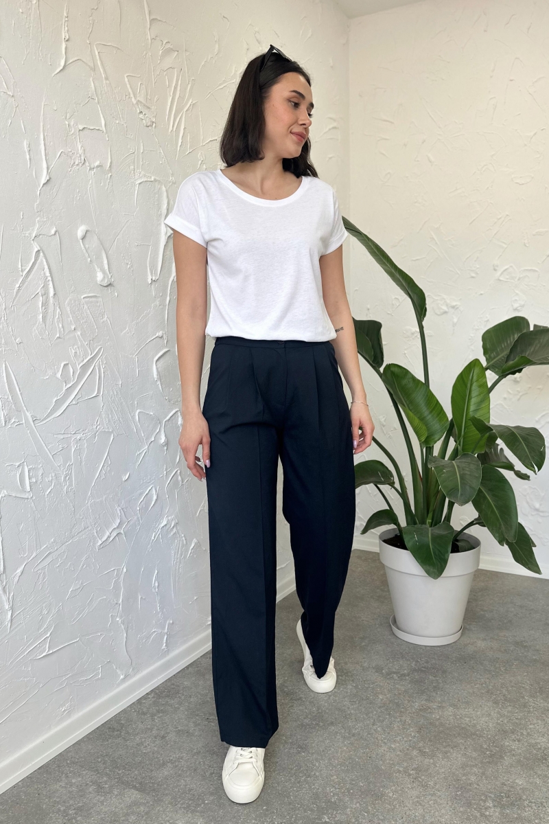 Krep kumaş kumaştan üretilmiştir. Pantolon boyu ortalama 105cm'dir. Pantolon önden çift pilelidir. Pantolon belden yarım lastikli ve fermuar kapamalıdır. Günlük hayatta rahatlıkla kullanabilirsiniz. Manken Ölçüleri: Boy 175cm, 63 Kilo, 38 Beden Modeldeki Ürün Ölçüleri: 36-38, Bel: 36cm, Basen: 53cm Ürün İçeriği: %50 Pamuk, %50 Polyester Ürün ölçülerinde birkaç cm yanılma payı olabilir. Ürün renklerinde konsept çekimlerinden dolayı ufak ton farklılıkları olabilir..