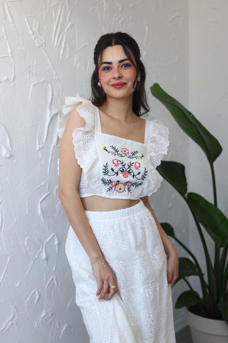 Pamuk keten kumaştan üretilmiştir. Crop boyu ortalama 35cm'dir. Crop önü işlemeli olup, askı kısımları fistodur. Crop yan ve etek kısmı lastik büzgüdür. Günlük hayatta rahatlıkla kullanabilirsiniz. Manken Ölçüleri: Boy 167cm, 48 Kilo, 36 Beden Modeldeki Ürün Ölçüleri: Beden: S, Göğüs: 35cm Ürün İçeriği: %100 Pamuk Ürün ölçülerinde birkaç cm yanılma payı olabilir. Ürün renklerinde konsept çekimlerinden dolayı ufak ton farklılıkları olabilir.