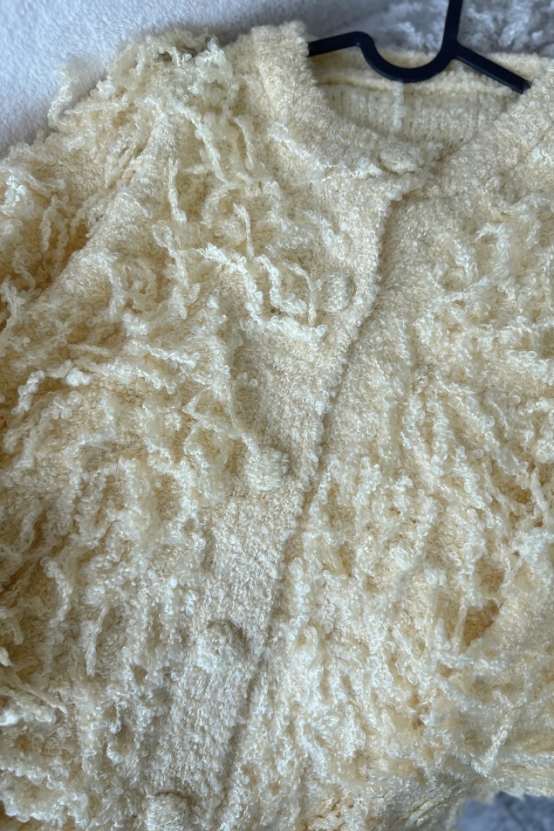 Hırka saçaklı trikodan üretilmiştir. Standart beden , 36-42 beden aralığı için uygundur. Hırka boyu ortalama 55cm'dir. Hırka boydan düğmelidir. Modeldeki Ürün Ölçüleri: Beden: Standart, Göğüs: 55cm Ürün İçeriği: %85 Merserize, %15 Polyester Ürün ölçülerinde birkaç cm yanılma payı olabilir. Ürün renklerinde konsept çekimlerinden dolayı ufak ton farklılıkları olabilir.